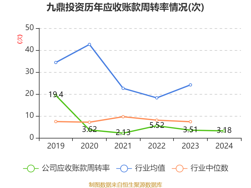 以4月24日收盘价计算,九鼎投资目前市盈率(TTM)约为-21.39倍,市净率(LF)约2.18倍,市销率(TTM)约17倍。