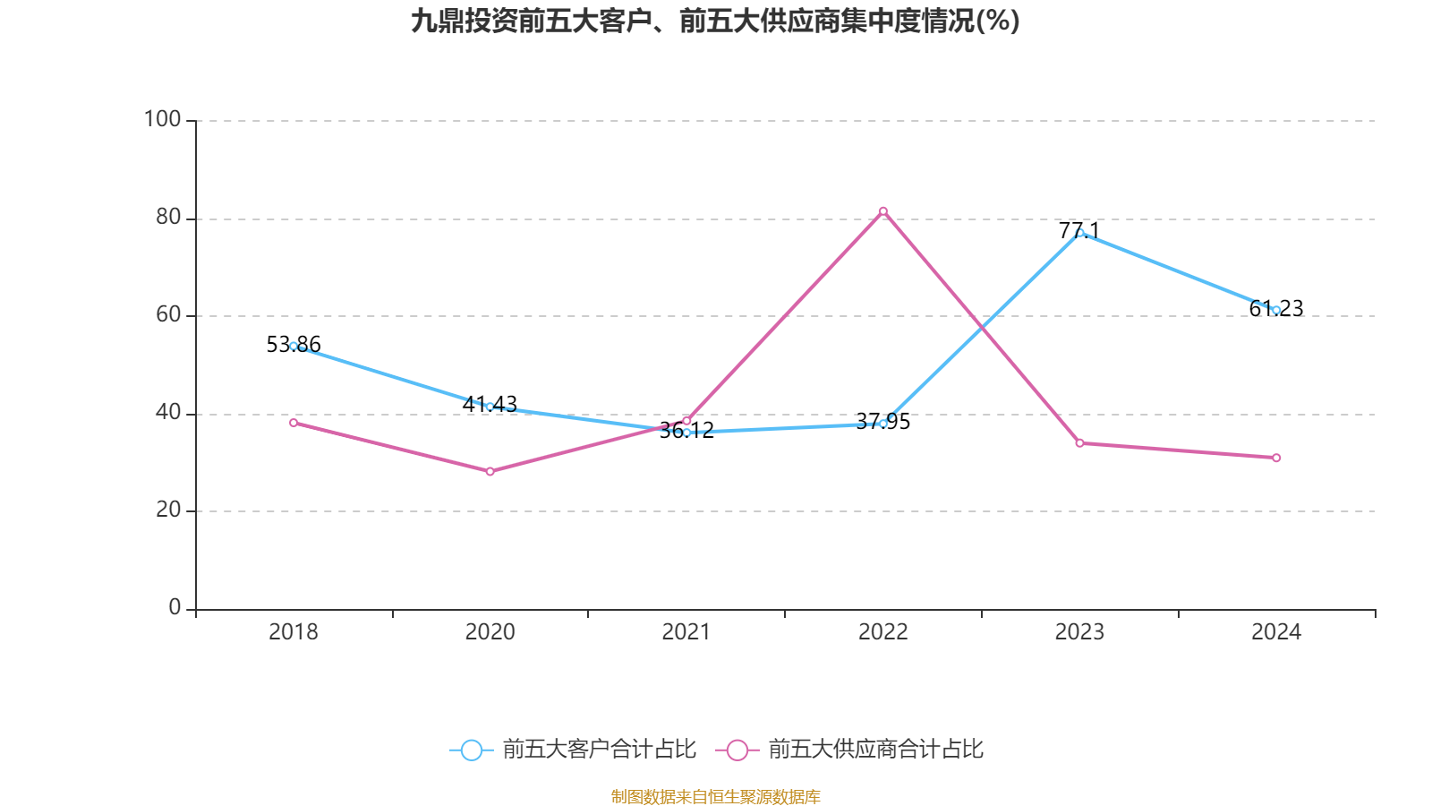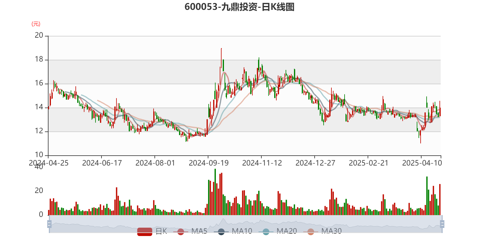 股东名称持流通股数(万股)占总股本比例(%)变动比例(百分点)江西中江集团有限责任公司12919.5229.8-21.200江西紫星企业管理有限公司9263.1521.36627不变江西紫星商业发展有限公司9191.0721.2新进拉萨昆吾九鼎产业投资管理有限公司503.851.162184不变金建华268.40.619088不变香港中央结算有限公司183.570.423423-0.020蔡自巍92.520.213403不变周宇70.370.162315不变姚永海67.570.155856新进廖少层66.180.15265不变值得注意的是,中登公司数据显示,截至2025年4月18日,九鼎投资45.3%股份处于质押状态。年报显示,第一大股东江西中江集团有限责任公司质押9900万股公司股份,占其全部持股的76.63%;第二大股东江西紫星企业管理有限公司质押9240万股公司股份,占其全部持股的99.75%;第四大股东拉萨昆吾九鼎产业投资管理有限公司质押500万股公司股份,占其全部持股的99.24%。